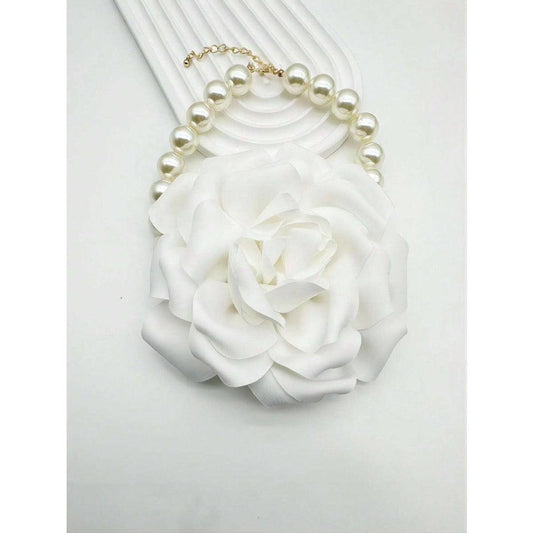 Colier choker, alb, cu floare, Benoni C15