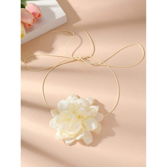 Colier choker, alb, cu floare, Bebiane C14