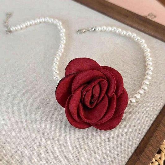 Colier choker, rosu, cu floare, Benigna C15