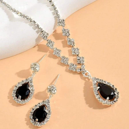 Set colier si cercei, argintiu, cu pietre, Nichi C15