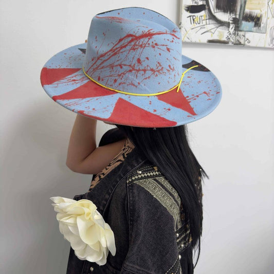 Palarie maro, stil cowboy, de paie, handmade, pictata si accesorizata manual, Jamaica