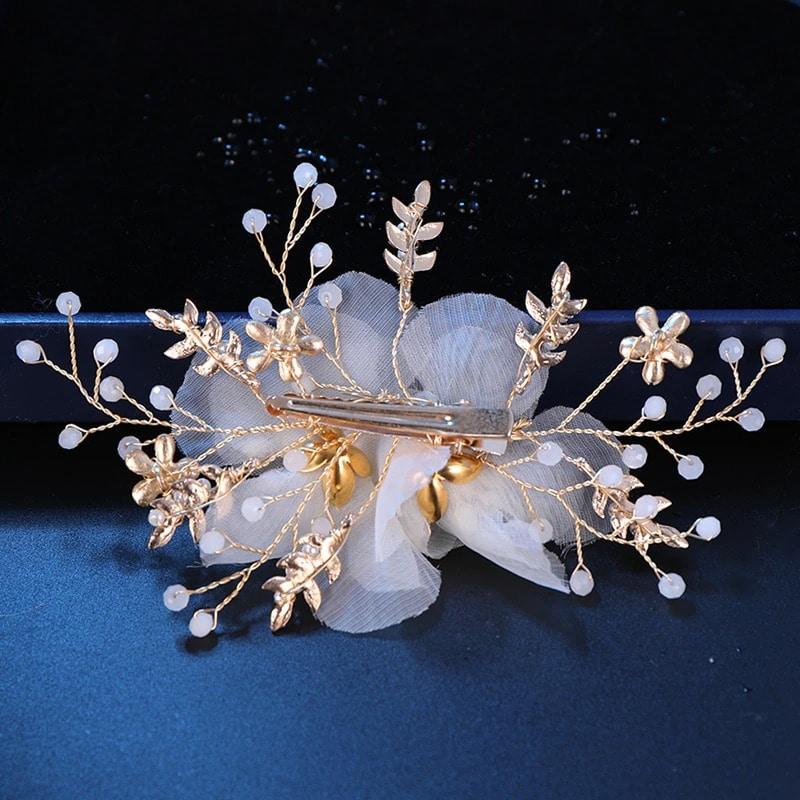 Accesoriu par, auriu, cu flori albe si pietre, Olivera C1