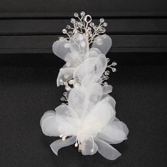 Accesoriu par cu perle si flori, argintiu, Lilian C7
