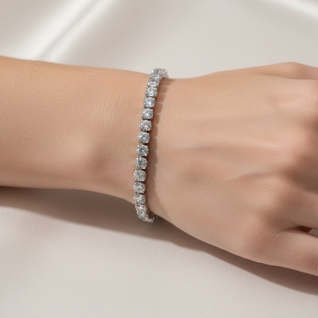Bratara tennis luxury, argintie, cu pietre, Chelsea C9