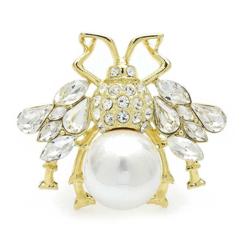 Brosa aurie, forma de bondar, cu perla si pietre, Rie C1