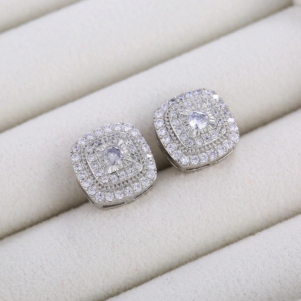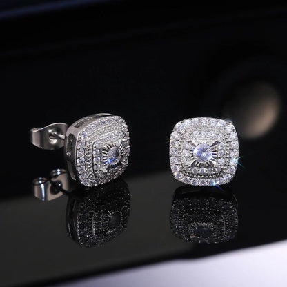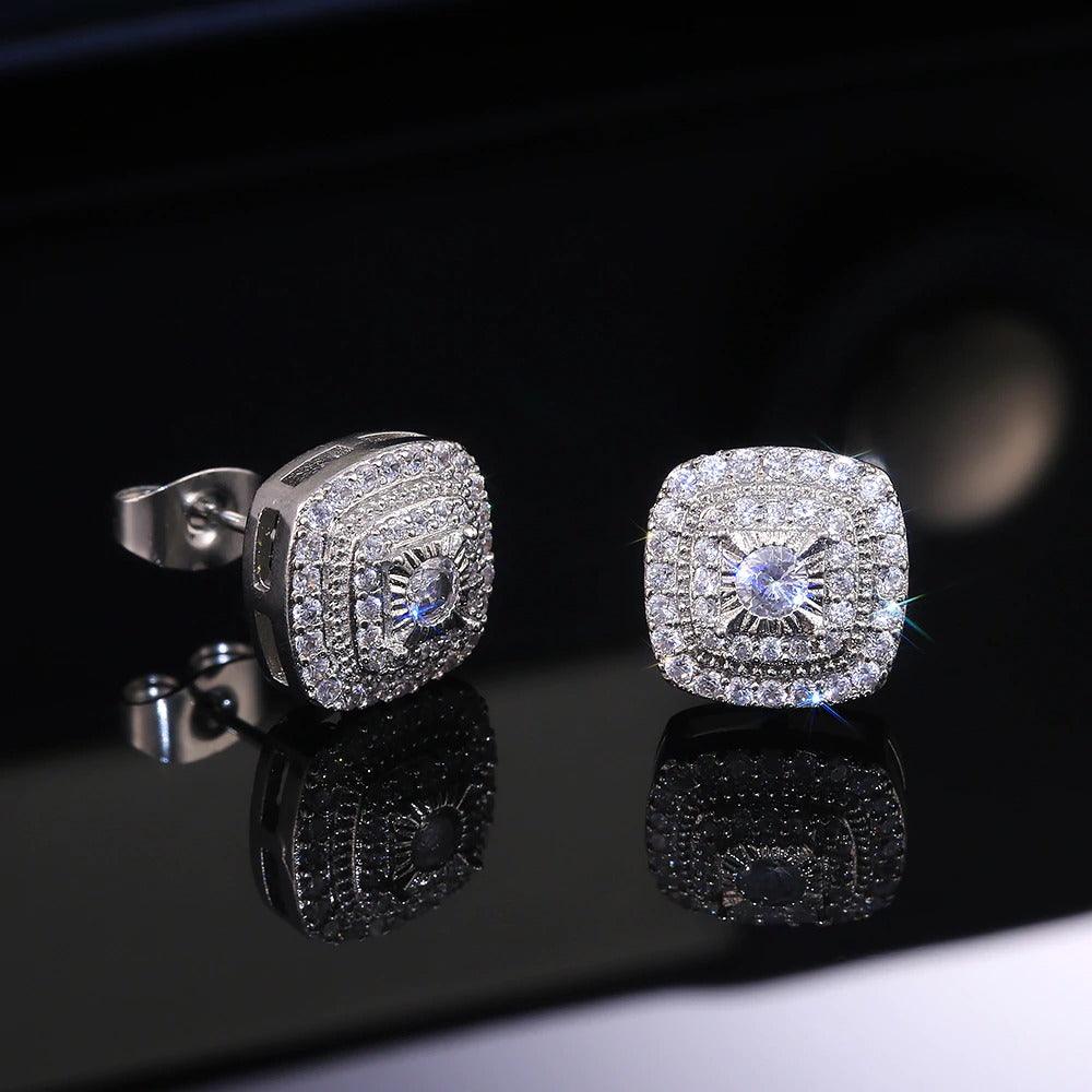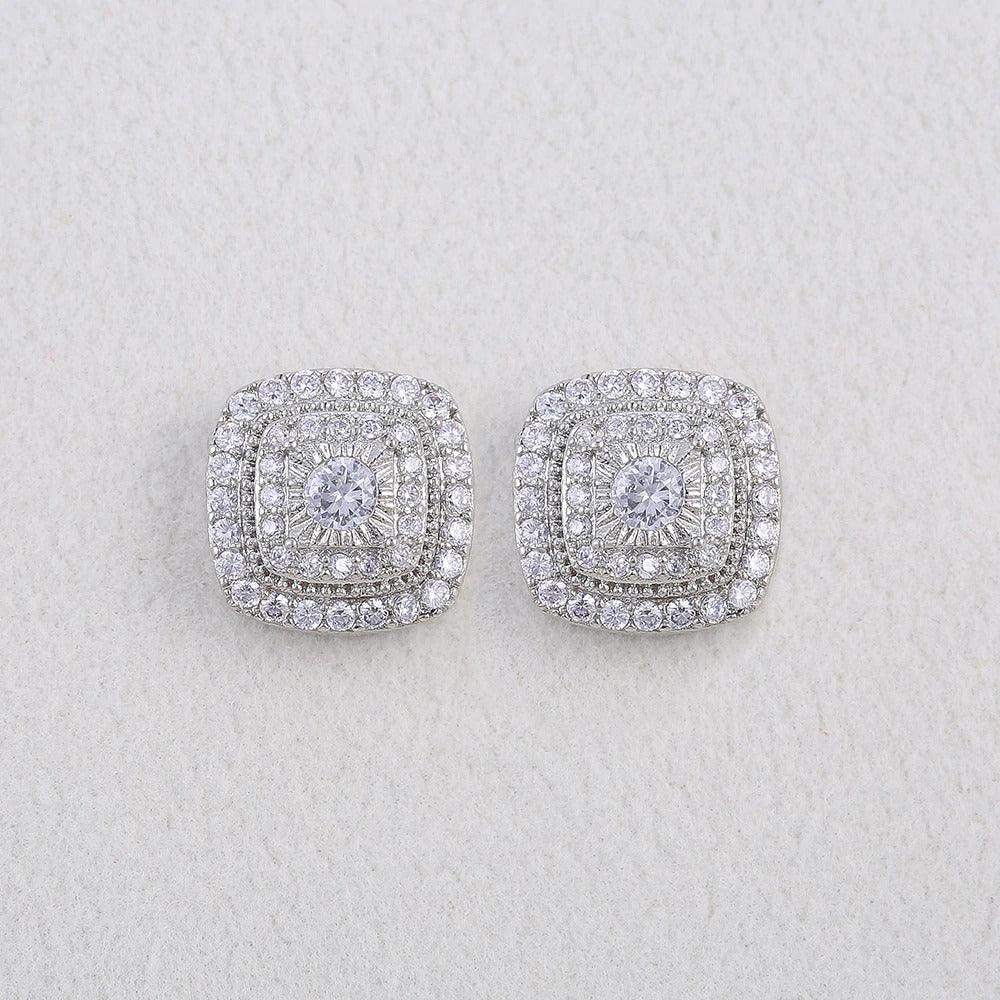 Cercei argintii, patrati, cu pietre din zirconiu, Nethe C15