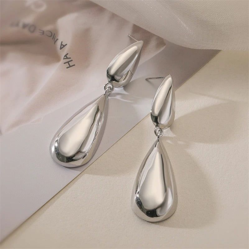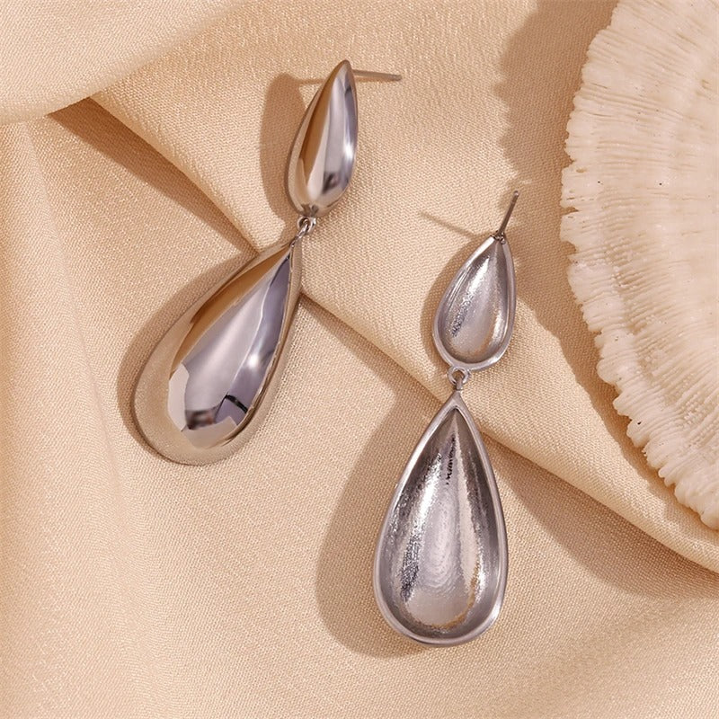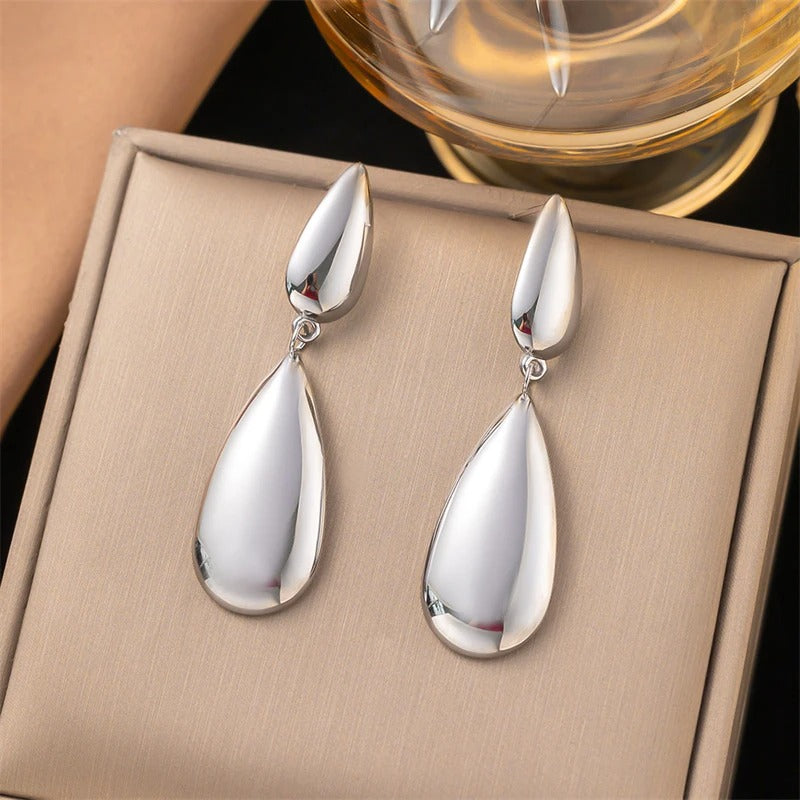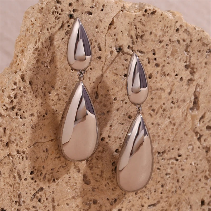 Cercei aurii, din otel inoxidabil, forma de lacrima, suflati cu aur 18k, Bastiane C2