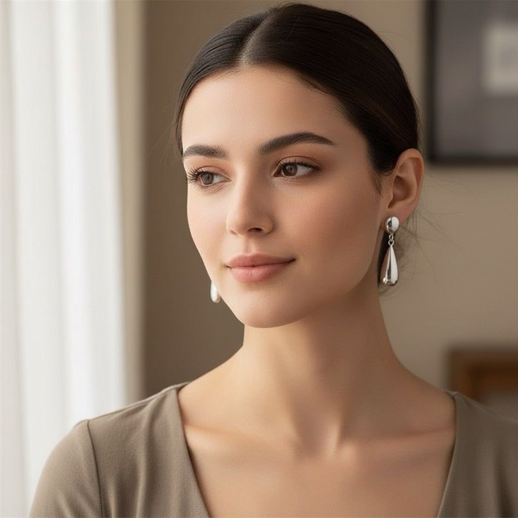Cercei argintii, din otel inoxidabil, forma de lacrima, suflati cu aur 18k, Demi C2