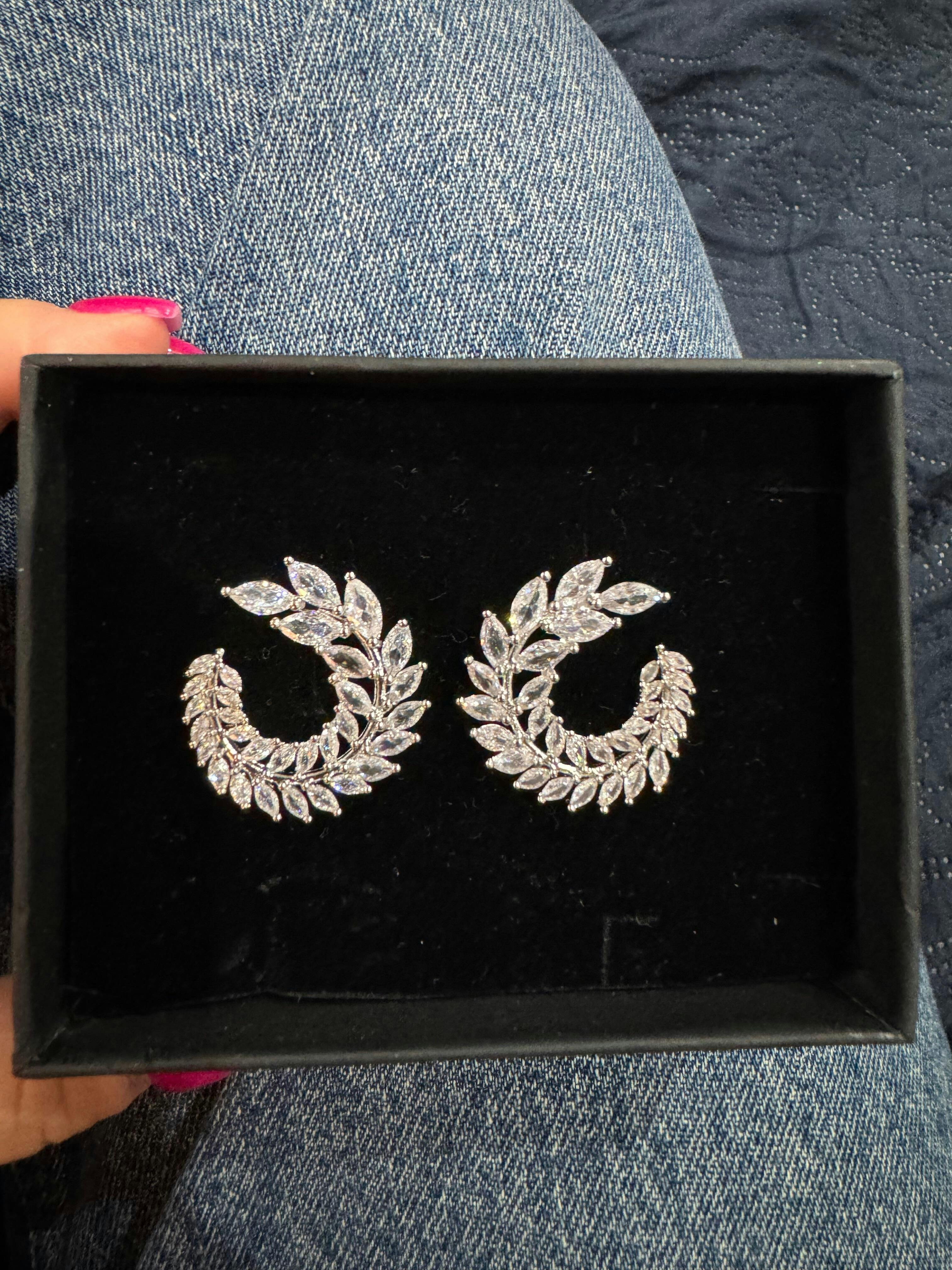 Cercei argintii, forma de frunzulite, cu pietre din zirconiu, Suen C5