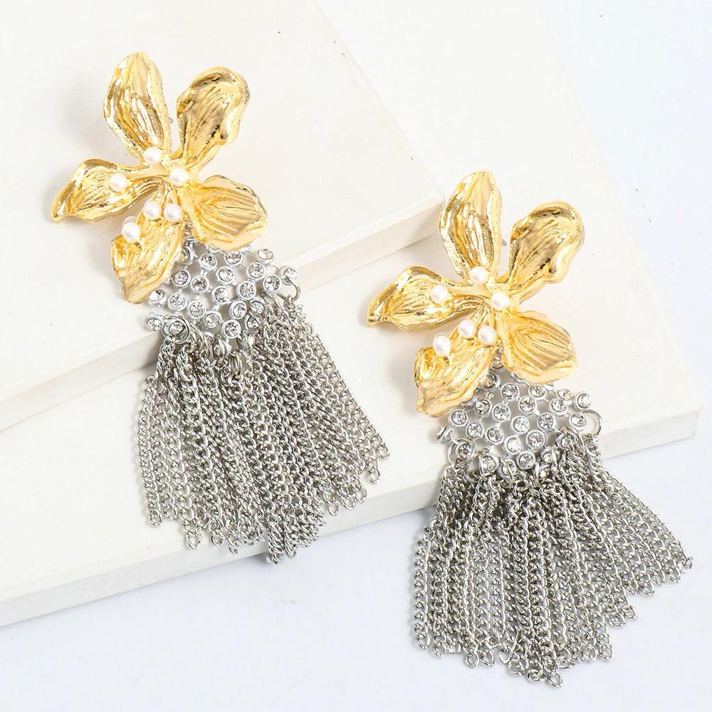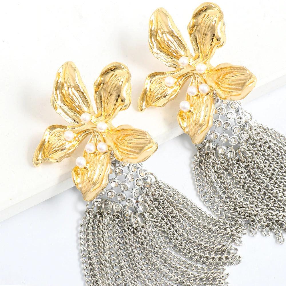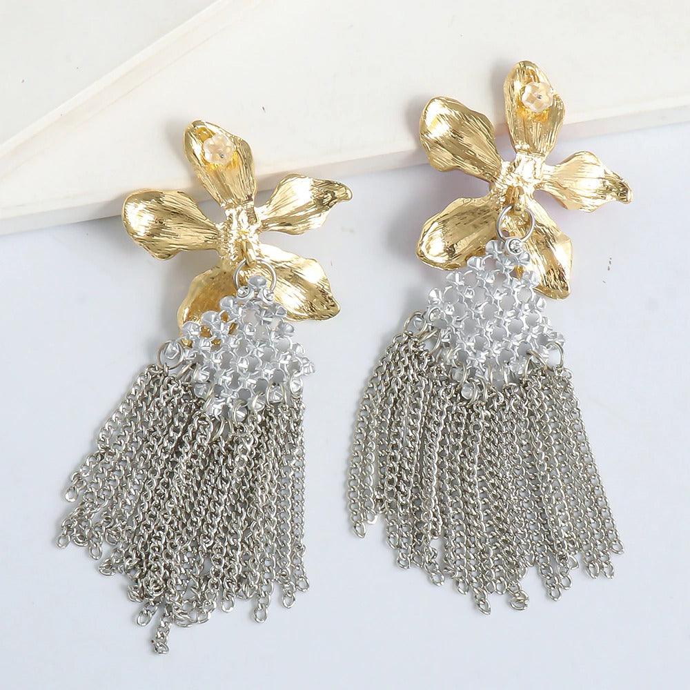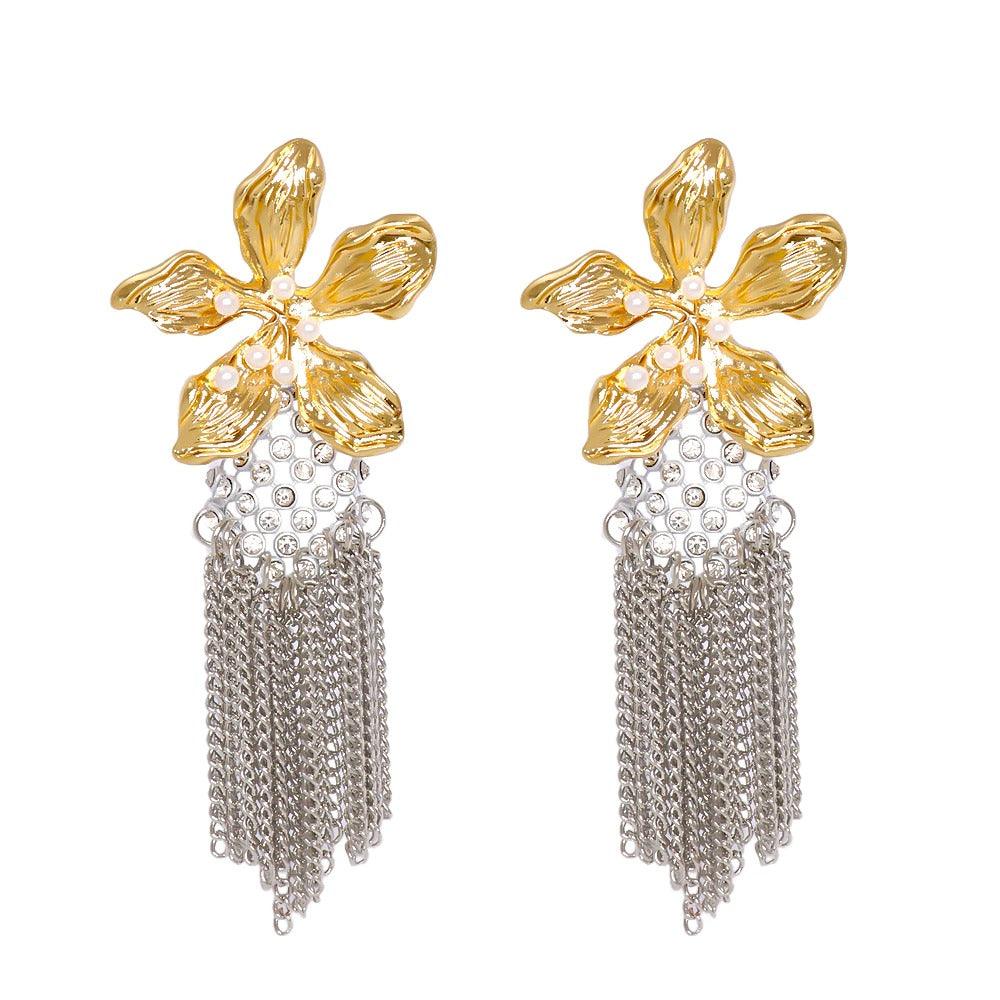 Cercei argintii, lungi, cu floare aurie, Filina C4