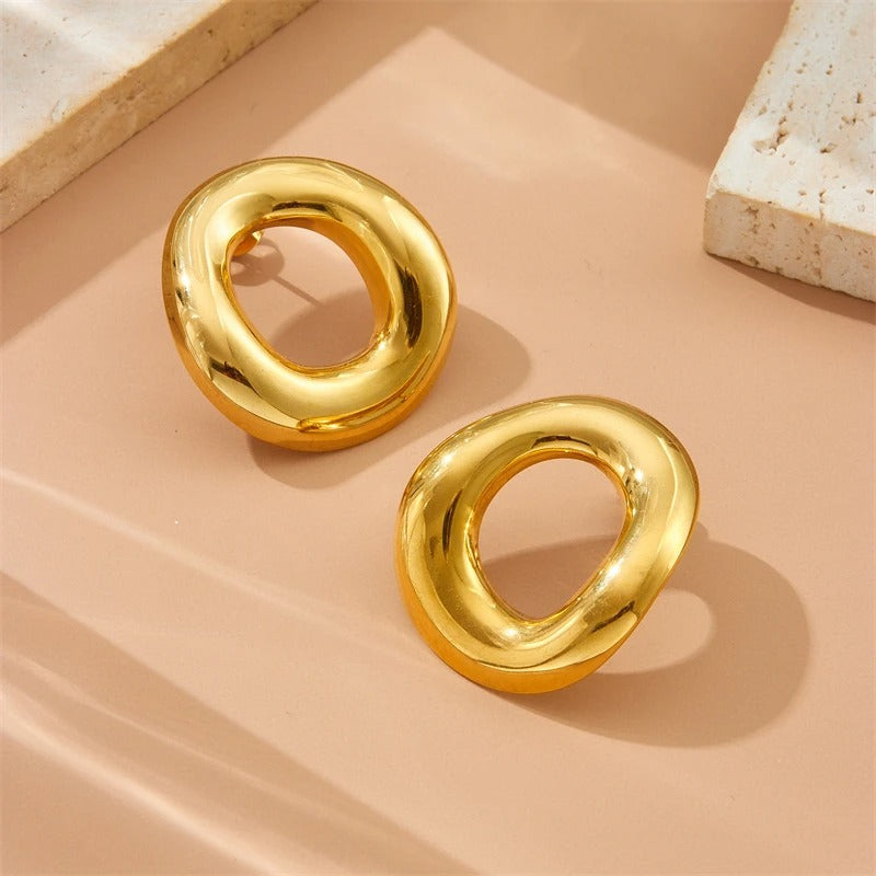 Cercei aurii, din otel inoxidabil, stil contemporan, suflati cu aur 18k, Georgia C1