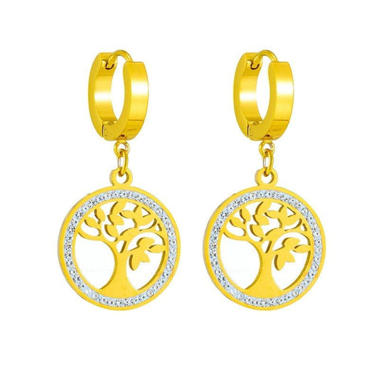 Cercei aurii, din otel inoxidabil, forma ovala, cu pietre verzi din zirconiu, suflati cu aur 18k, Florida C1
