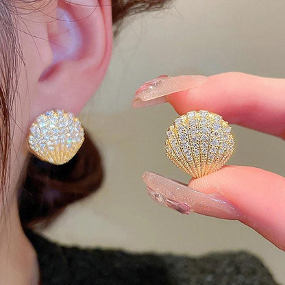 Cercei aurii, forma de scoica, cu pietre de zirconiu, Nathasja C3