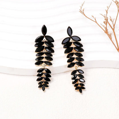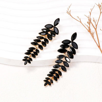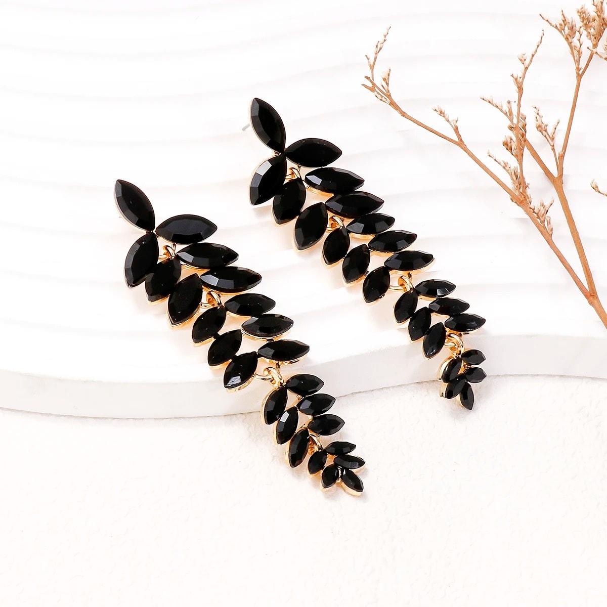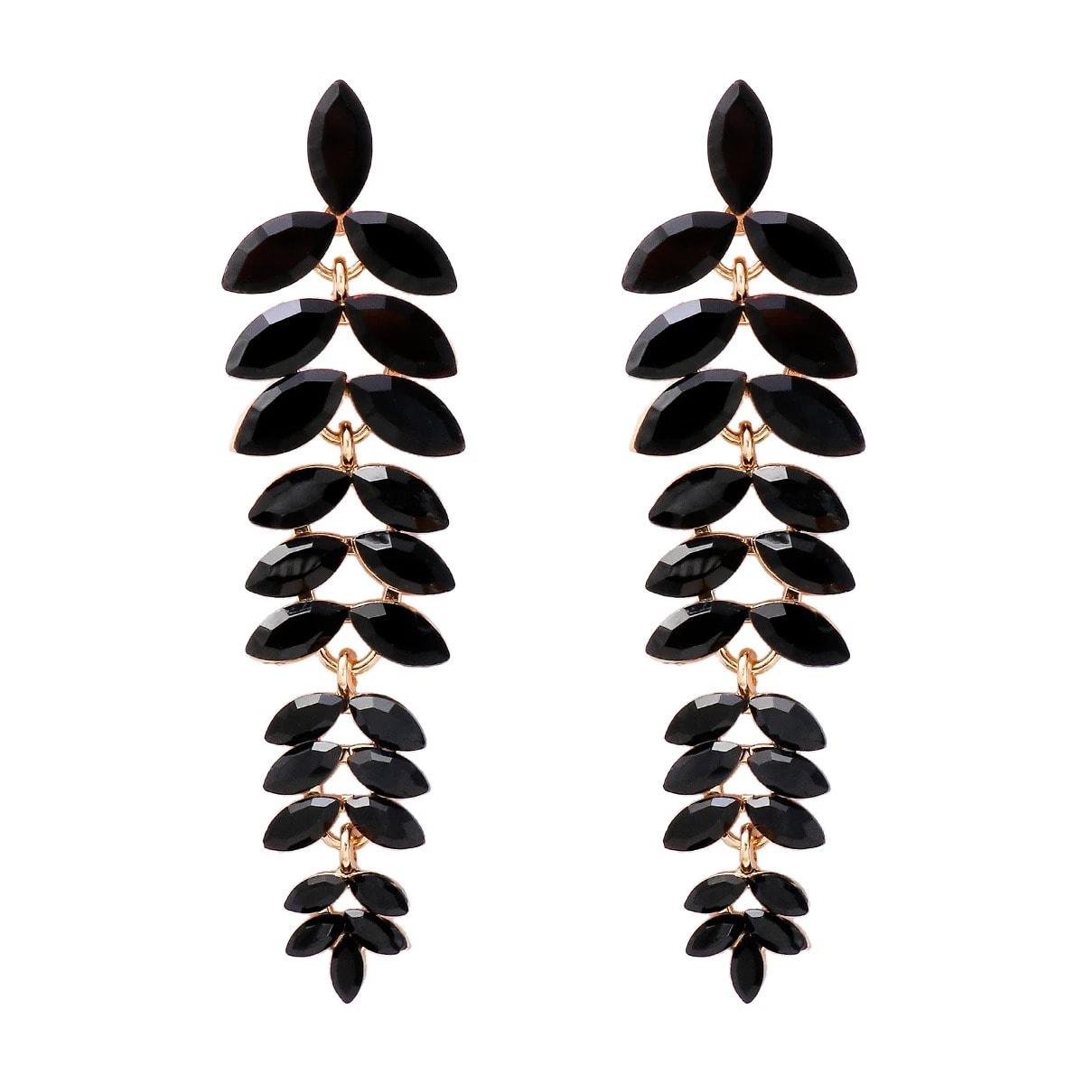 Cercei aurii, lungi, cu pietre negre, Marene C7