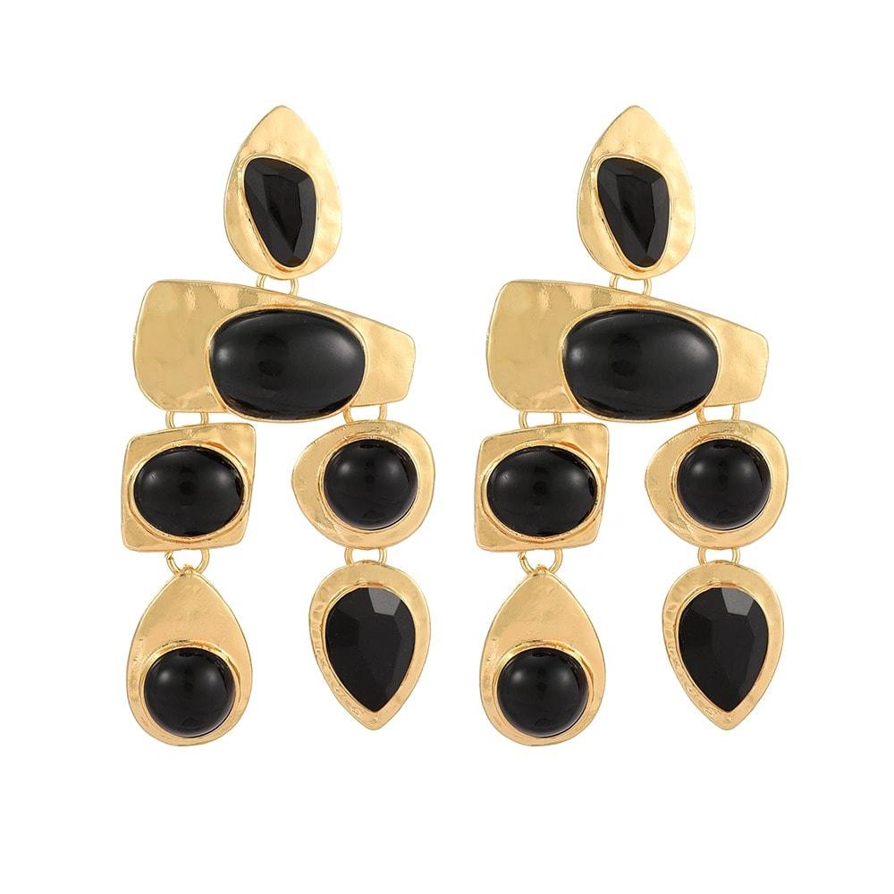 Cercei aurii, masivi, cu pietre negre, Eiko C2
