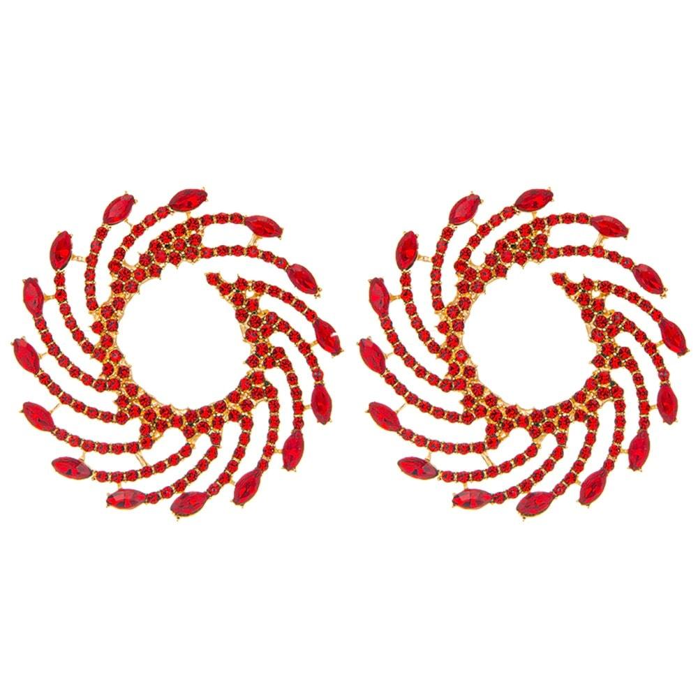 Cercei aurii, rotunzi, cu pietre rosii, Reena C2