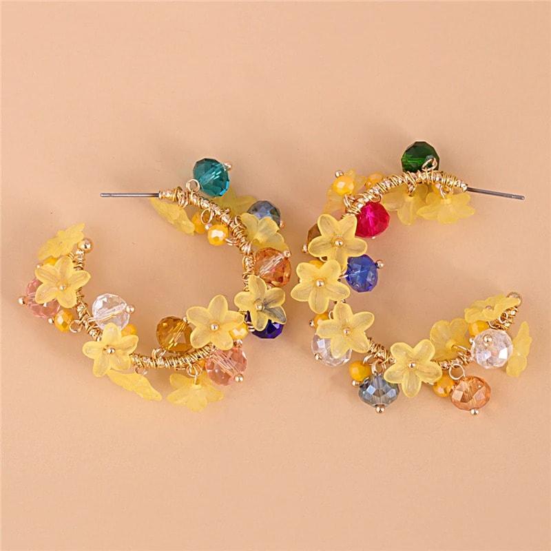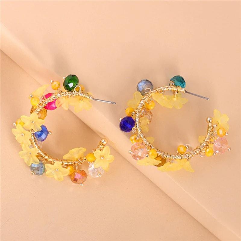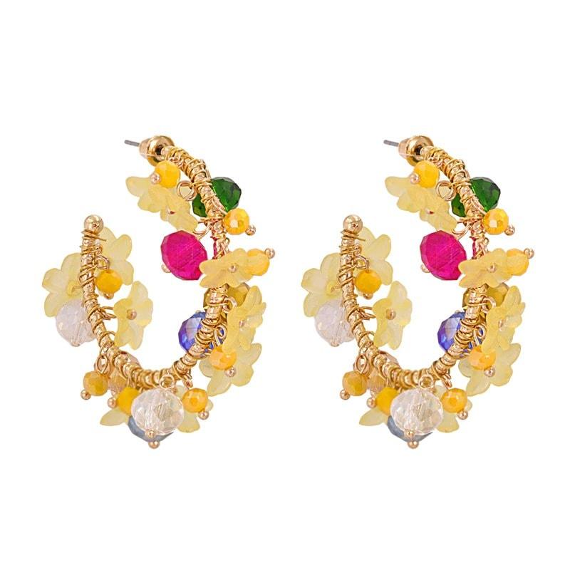 Cerceii Salli sunt ca o zi de vară surprinsă într-un accesoriu: veseli, colorați și plini de viață. Cu un design semirotund auriu, decorați cu mărgeluțe colorate și flori delicate, acești cercei sunt realizați din aliaj metalic și aduc instant o stare de bine oricărei ținute. Ideali pentru festivaluri, vacanțe sau ținute boho-chic.