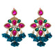 Cercei aurii, stil flamenco, cu pietre roz si flori turquoise, Henka C5