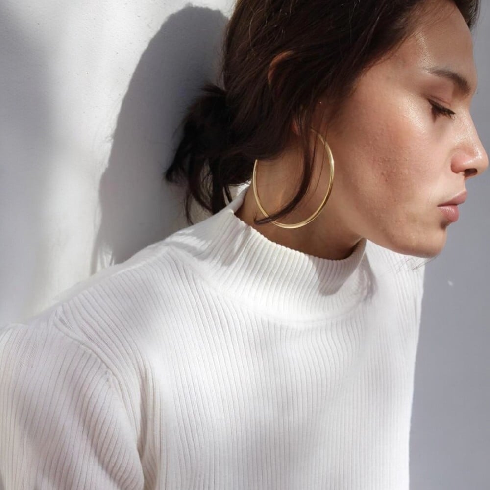 Cercei aurii, stil hoop, rotunzi, din otel inoxidabil, suflati cu aur 18k, Selena C4