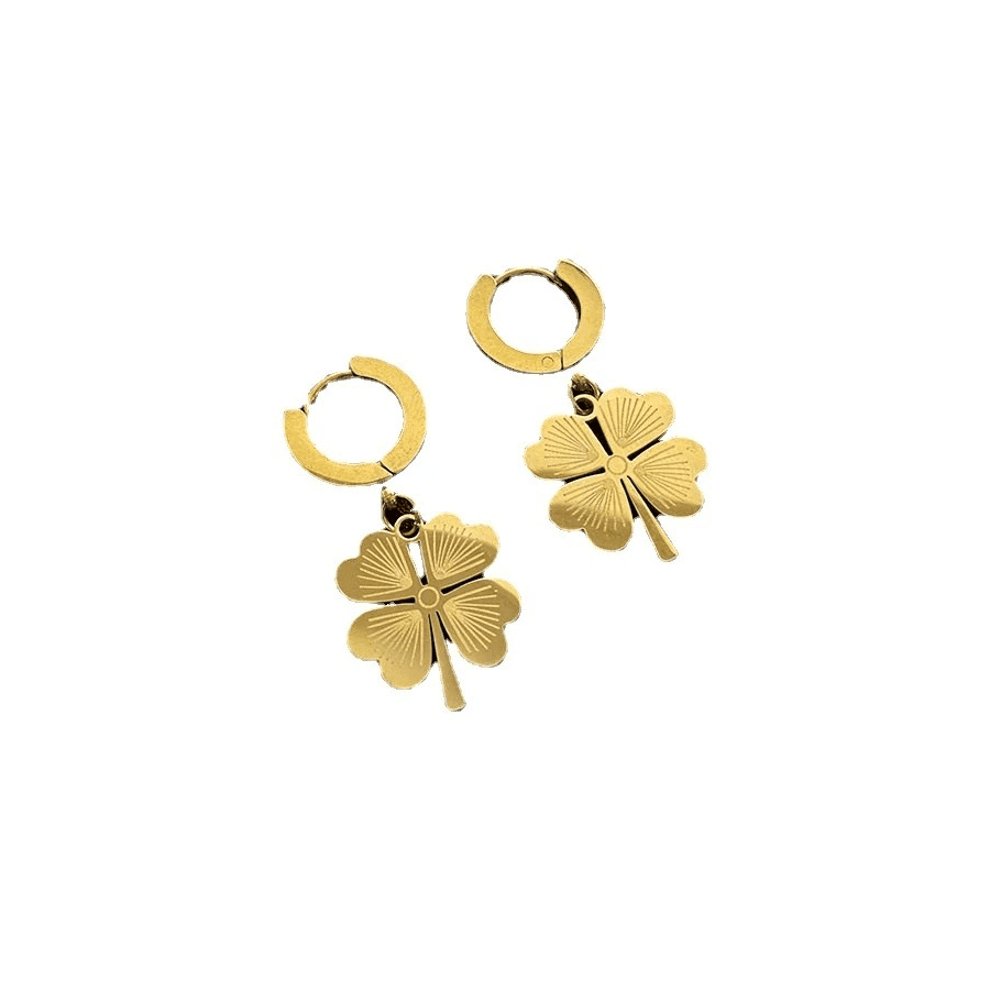 Cercei argintii, din otel inoxidabil, suflati cu aur 14k, forma de trifoi cu patru foi, Leticia C1