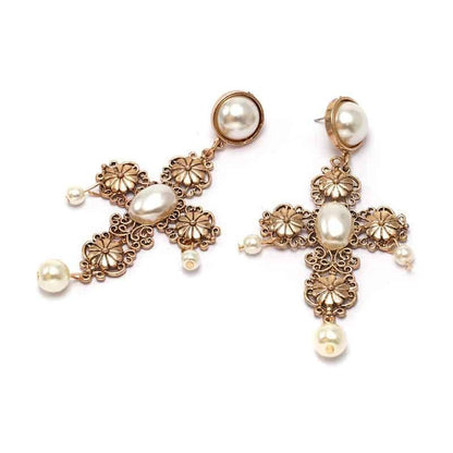 Cercei cruce, cu perle, aurii, Liisa C4