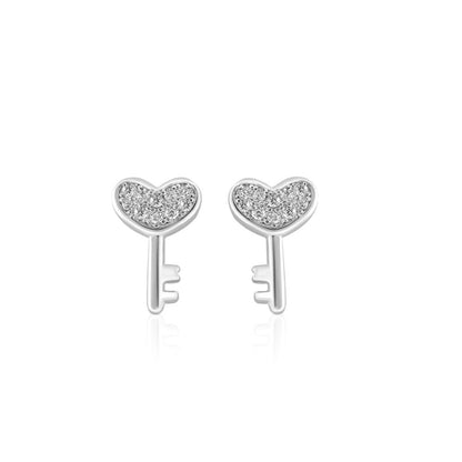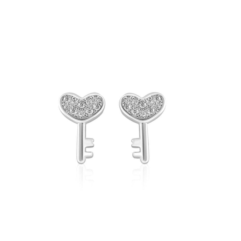 Cercei din argint 925, rodiat, forma de cheie cu inima si pietre din zirconiu, Nisse C1