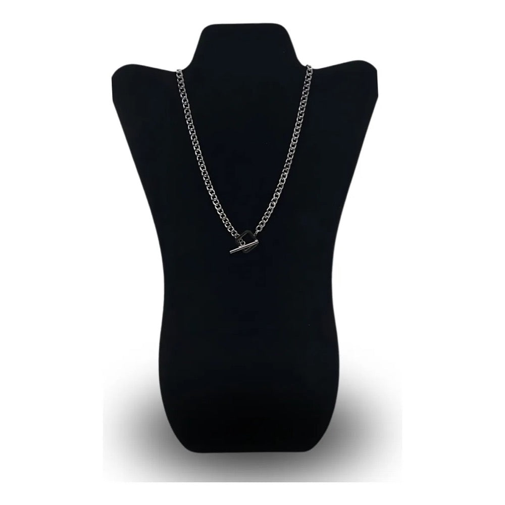 Colier argintiu, din otel inoxidabil, suflat cu aur 18k, cu zale, Svala C1
