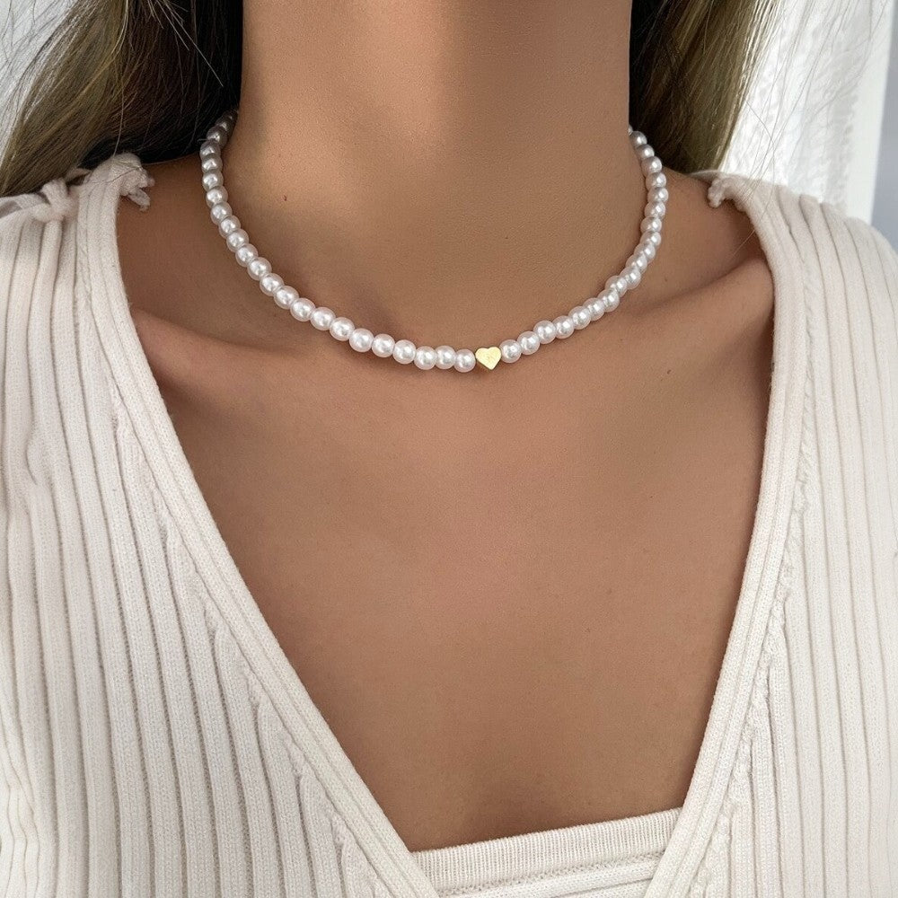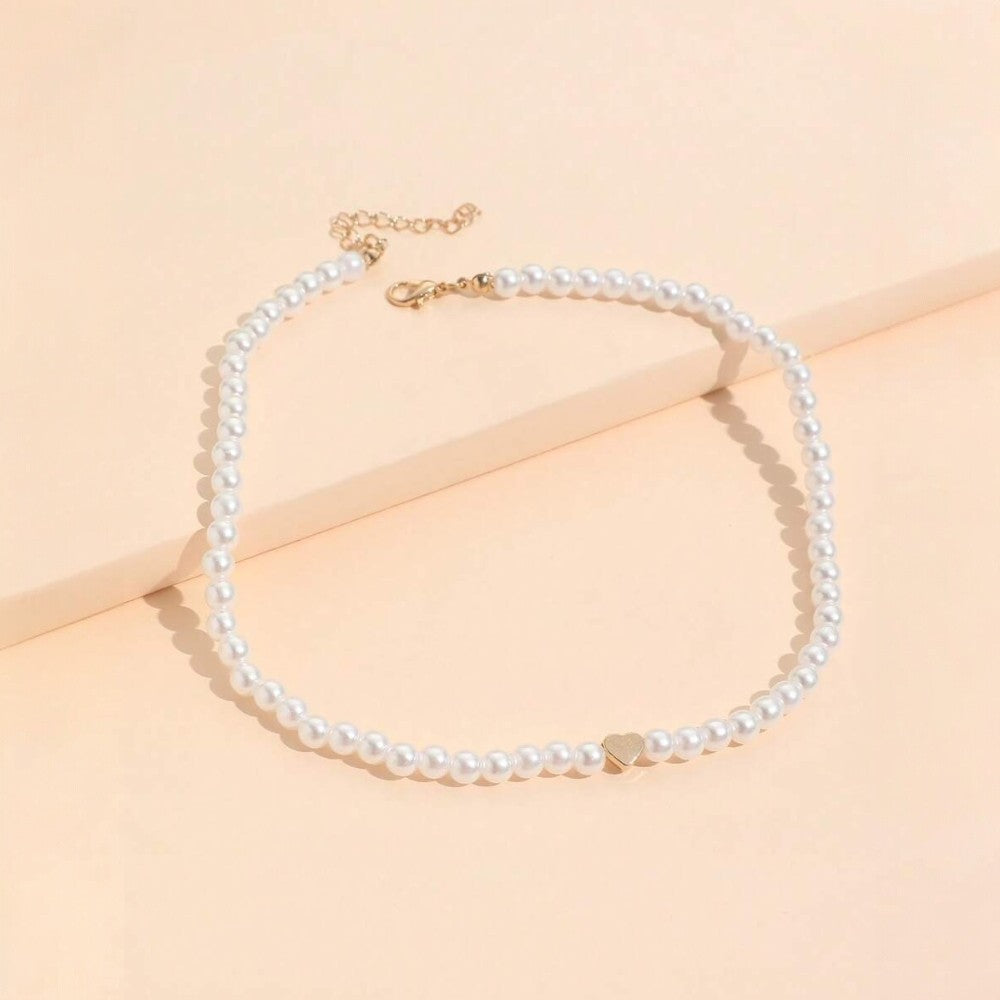 Colier auriu, ajustabil, cu perle si inima, Seidi C17
