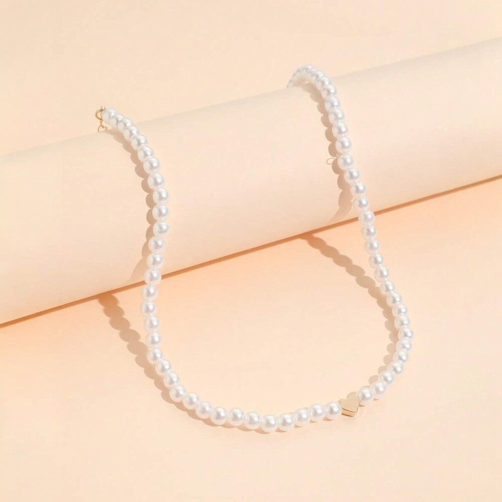 Colier argintiu, cu perle si pandantiv inimioara, Nicky C1