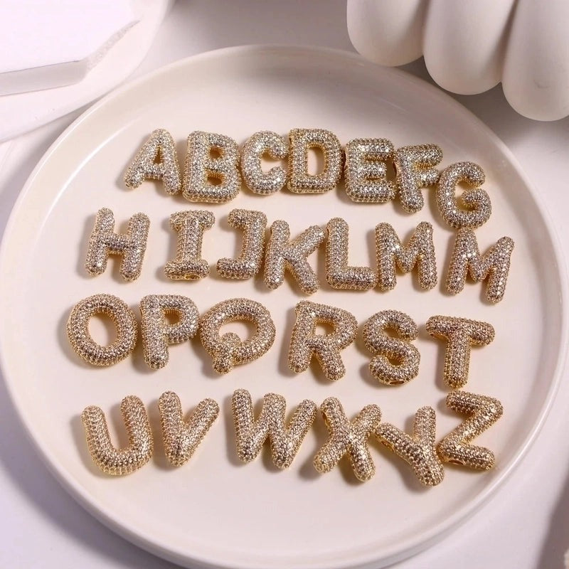 Inițială decorată cu zirconii – detalii fine, efect de diamant