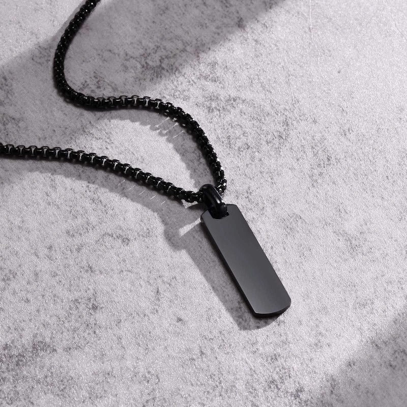 Colier barbati, negru, din otel inoxidabil, suflat cu aur 18k, cu placuta, Ragnar C9