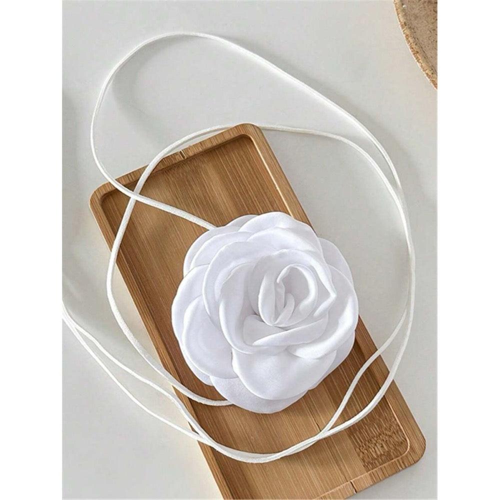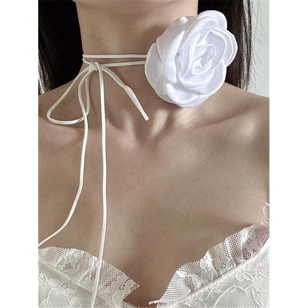 Colier choker Bebiane – alb delicat, cu floare romantică și panglică ajustabilă