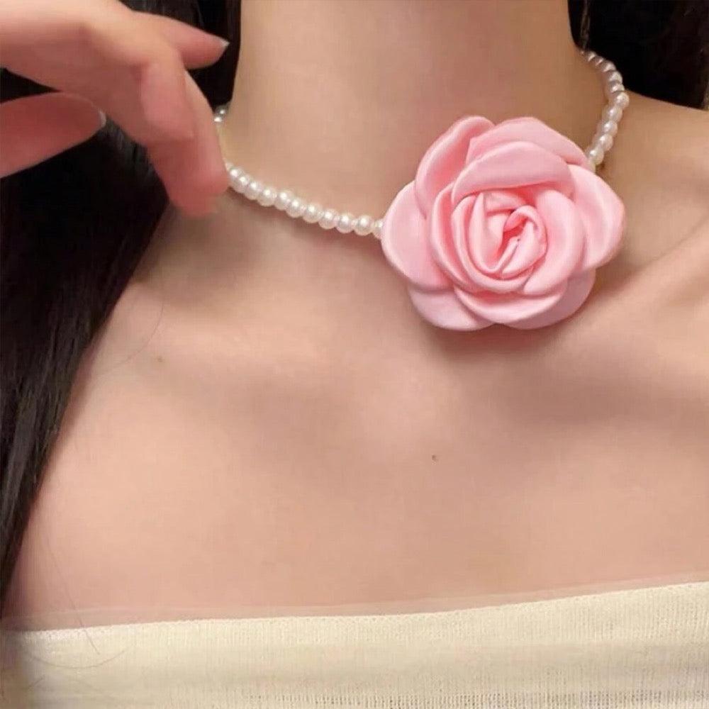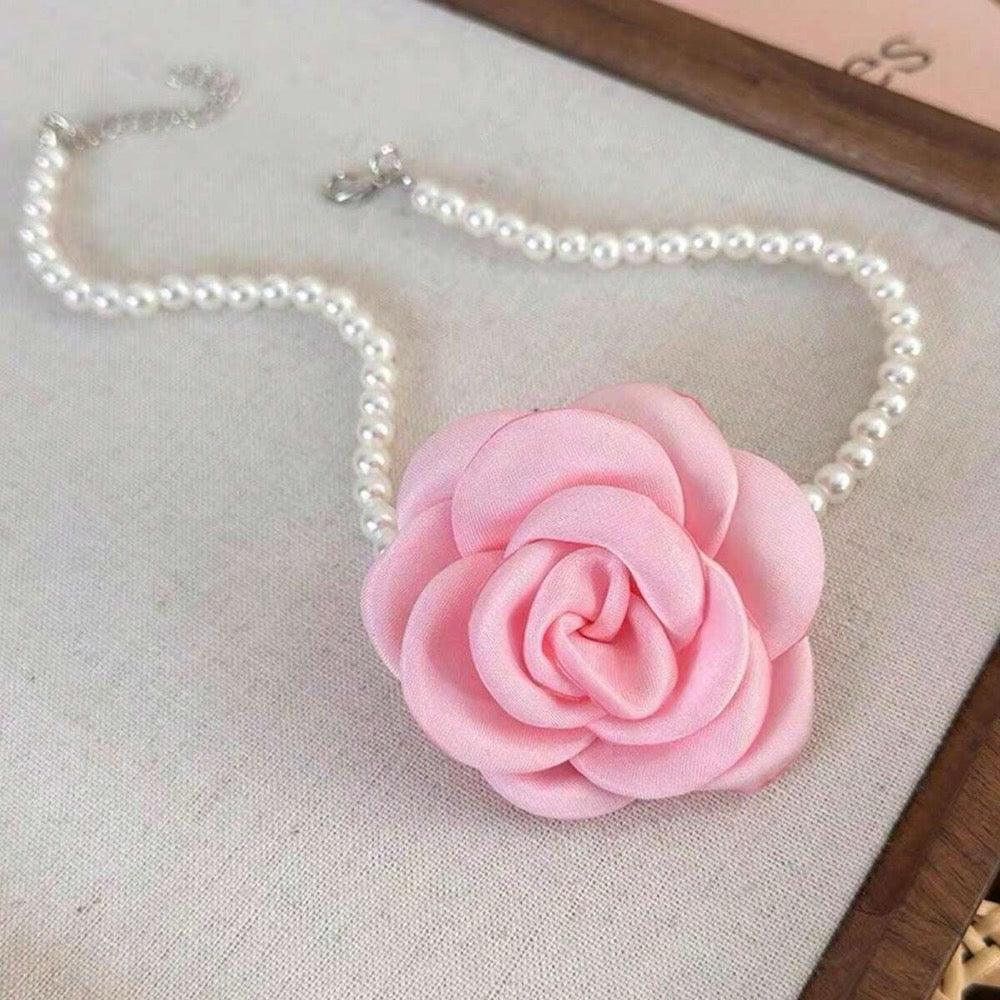 Colier choker Begitta – colier cu perle și floare roz romantică