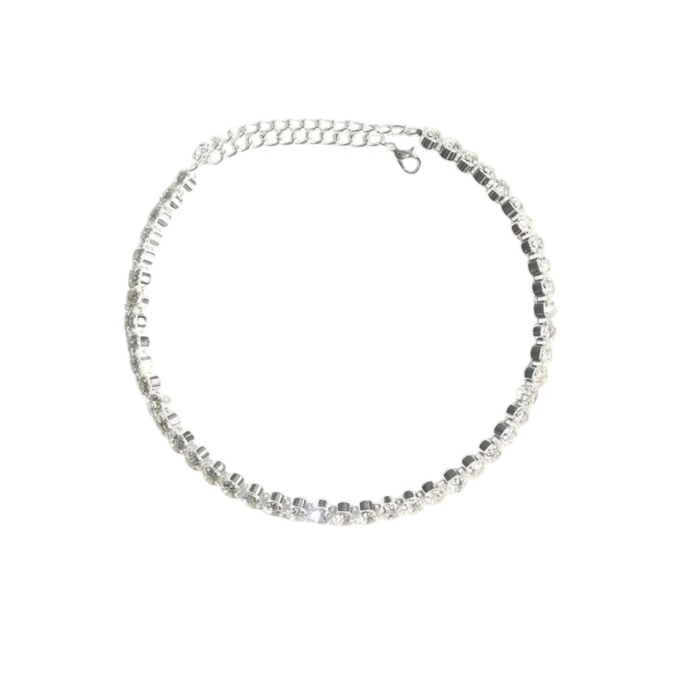 Set colier choker, bratara si cercei, argintiu, cu pietre, Jasmin C18