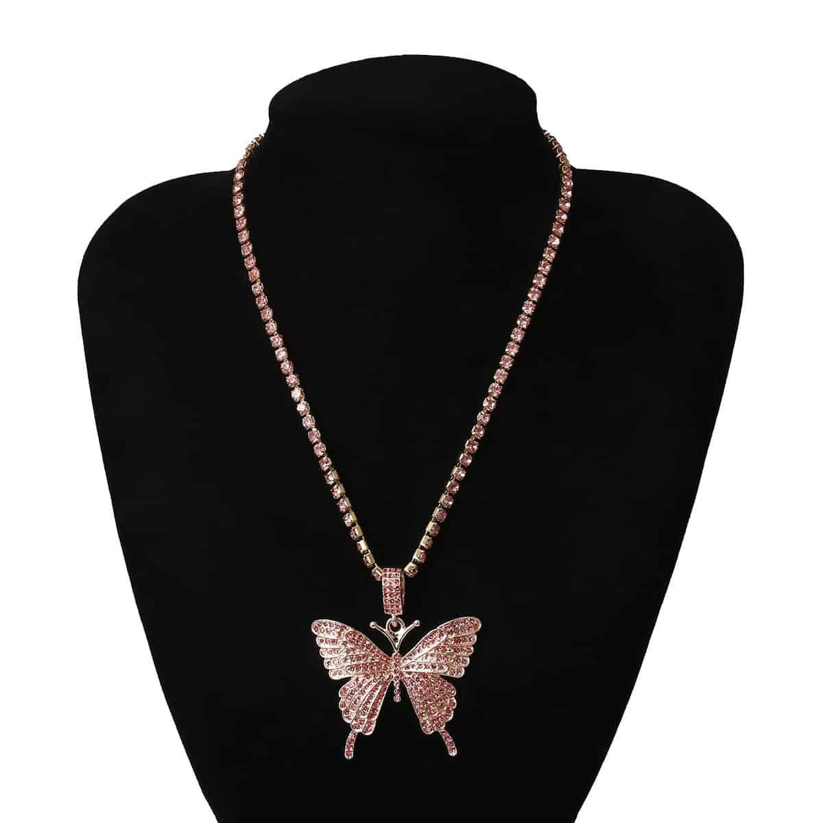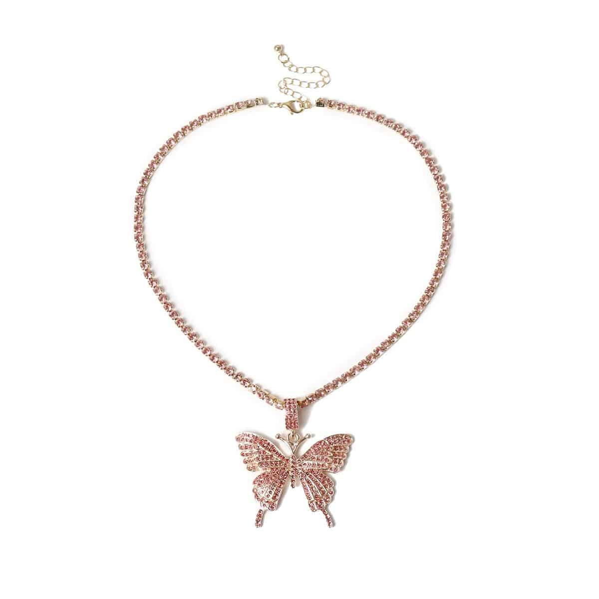 Pandantiv fluture decorat cu pietre roz – feminin și delicat