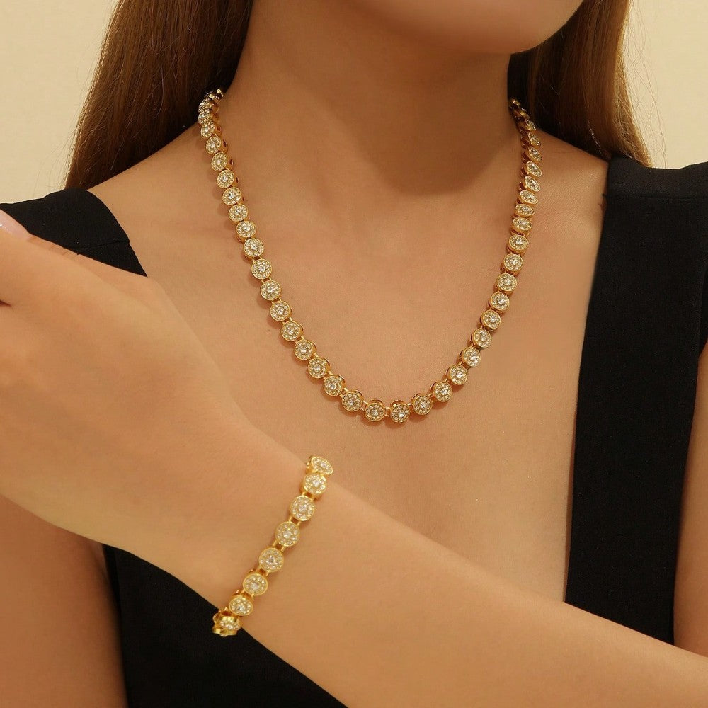 Set colier tennis, bratara si cercei, auriu, cu pietre, Dave C15