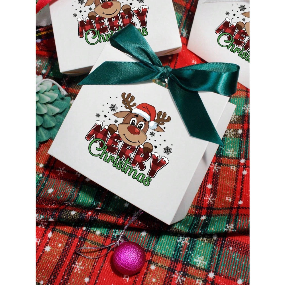 Cutiuta pentru cadou, visinie, reni aurii, cu autoformare, 10 cm x 11.5 cm x 4.5 cm