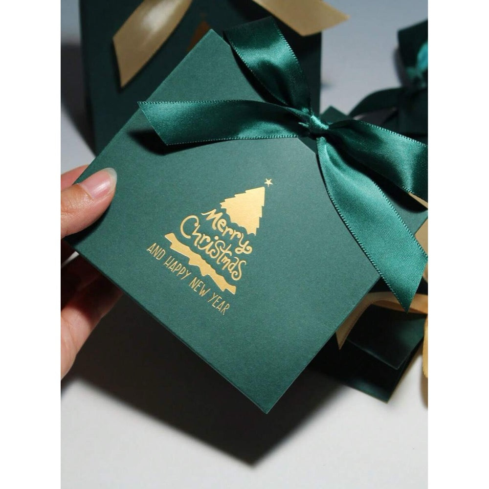 Cutiuta pentru cadou, verde, bradut auriu, cu autoformare, 10 cm x 11.5 cm x 4.5 cm
