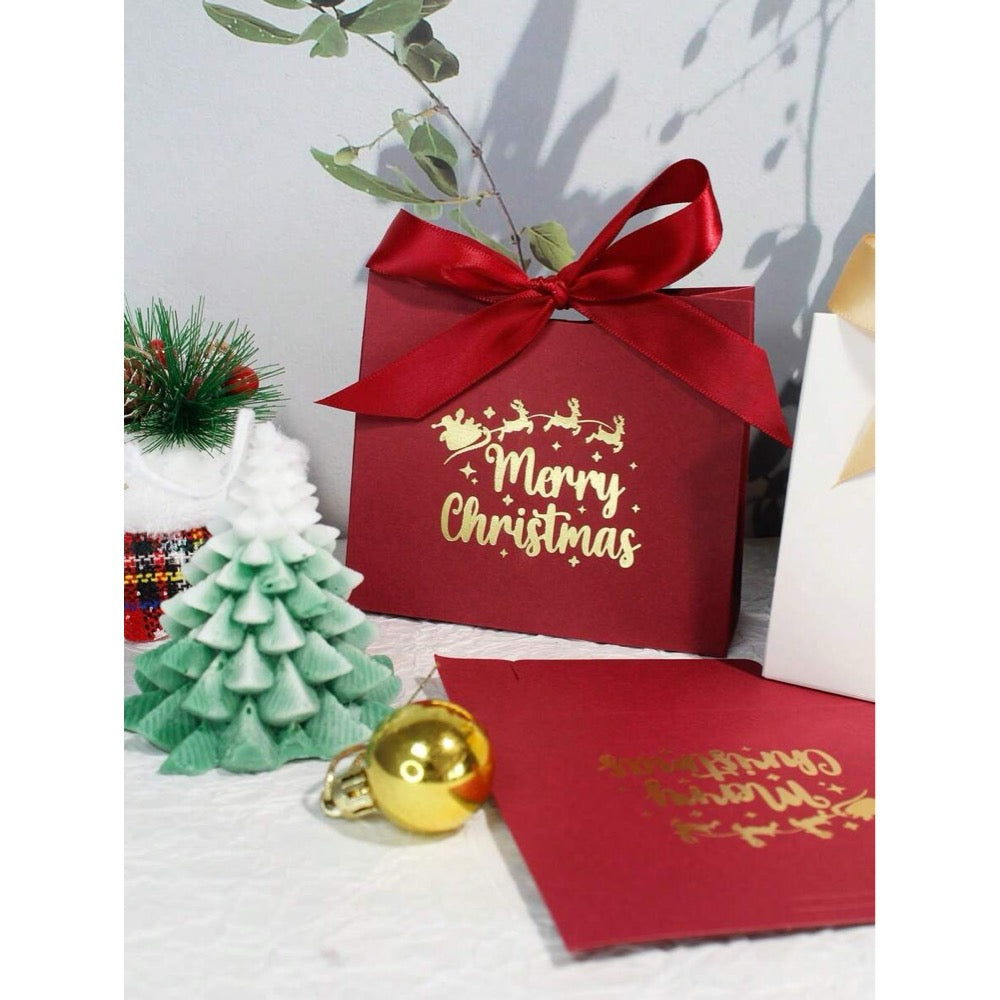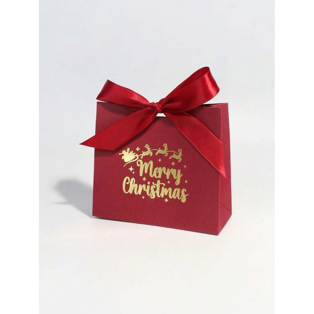 Cutiuta pentru cadou, visinie, reni aurii, cu autoformare, 10 cm x 11.5 cm x 4.5 cm