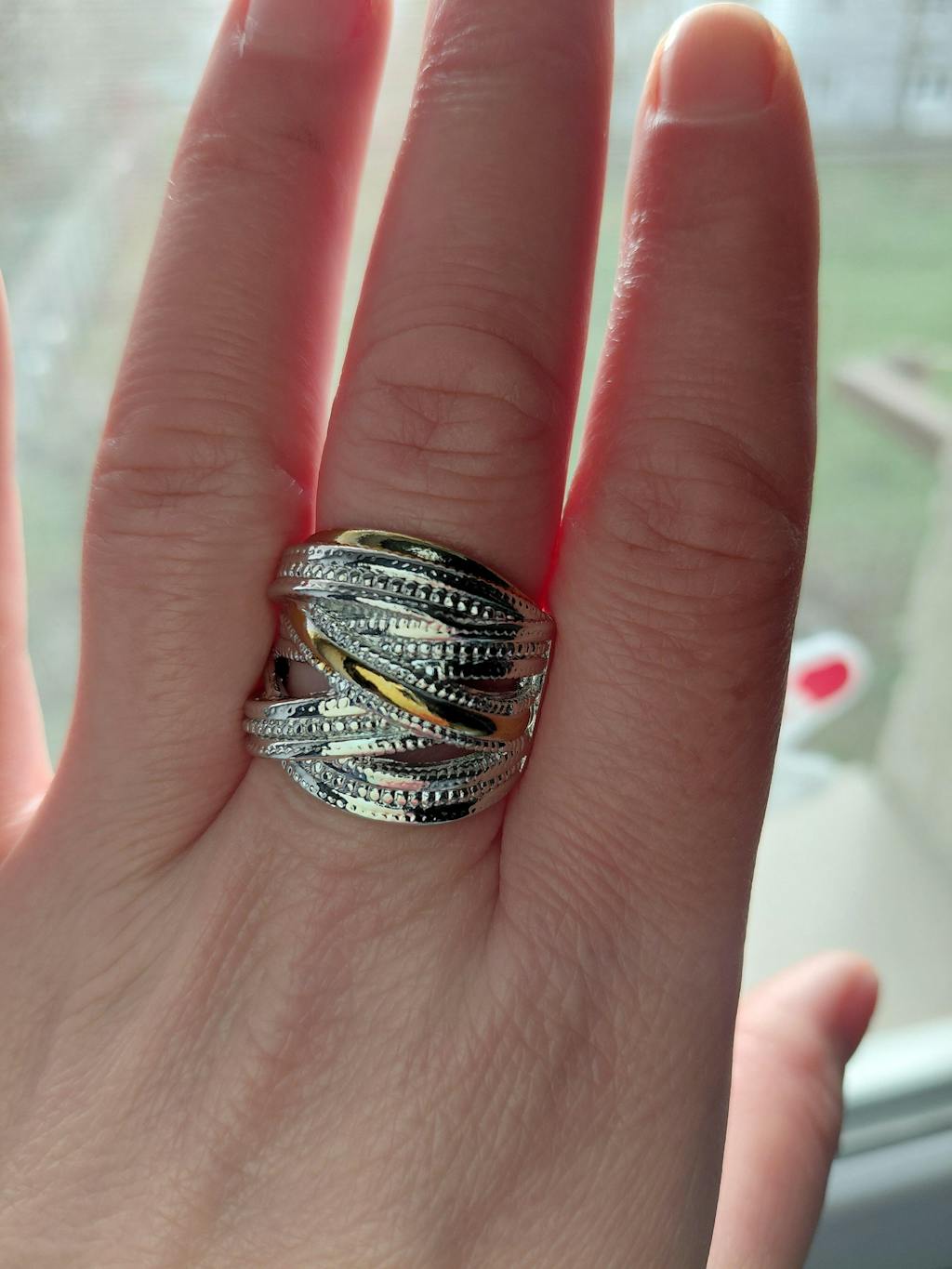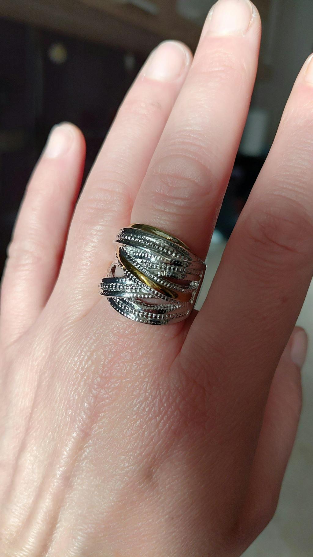 Este un inel frumos, se așează bine pe deget, e de efect.