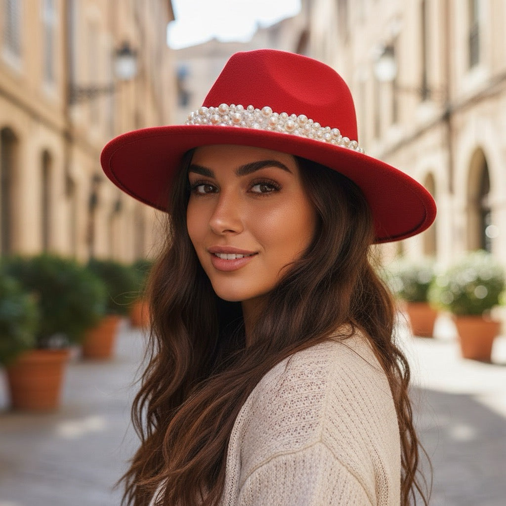 Andreea Georgiana Bratu Palarie dama, rosie, cu perle, Gloriana
