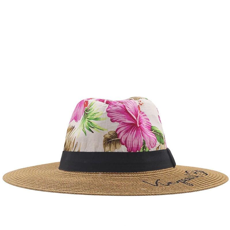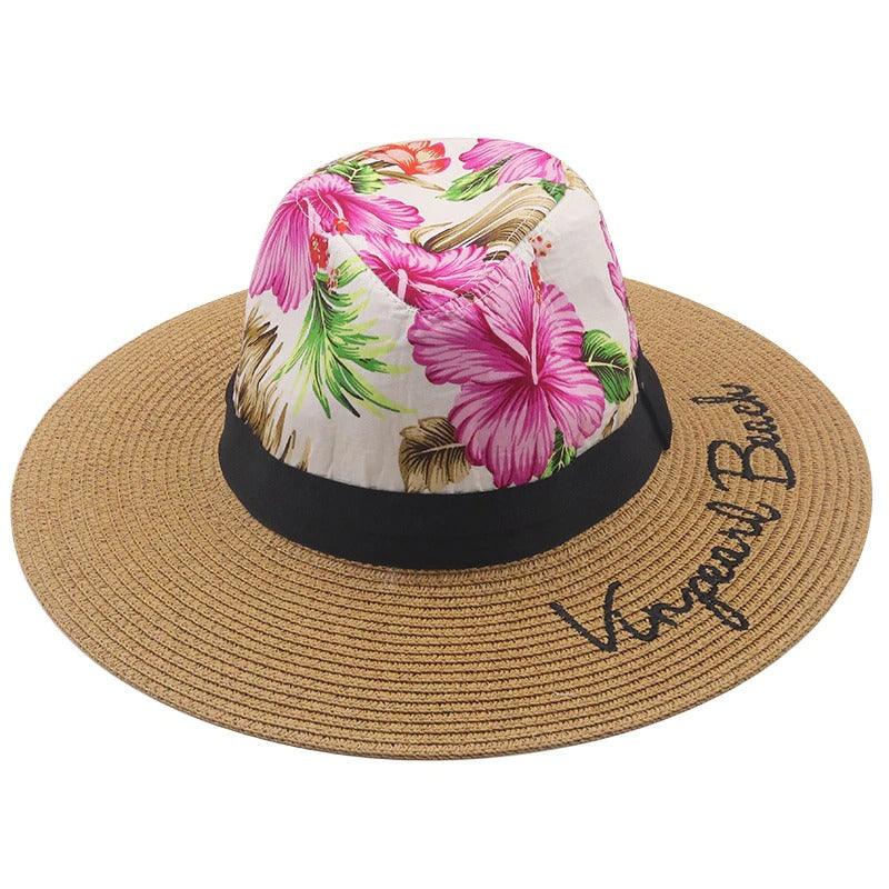 Palarie dama, maro, de vara, cu imprimeu floral, Thelia