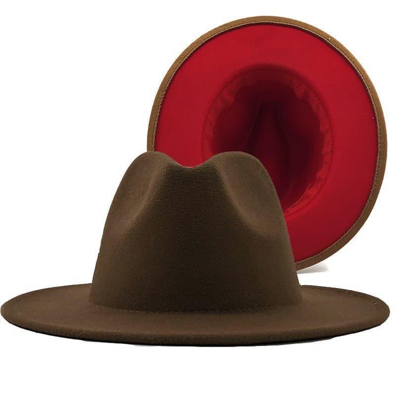 Palarie dama, maron, interior rosu, Marieta