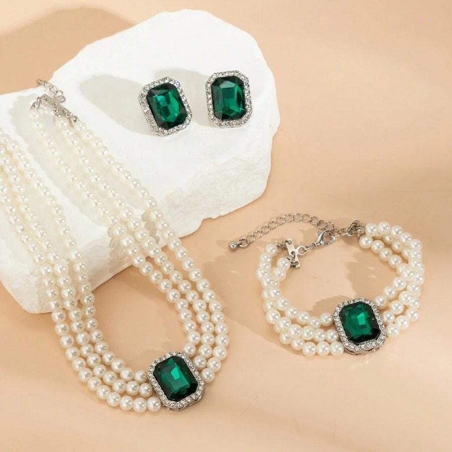 Set Olympia – perle elegante și accente verzi într-un trio sofisticat și versatil