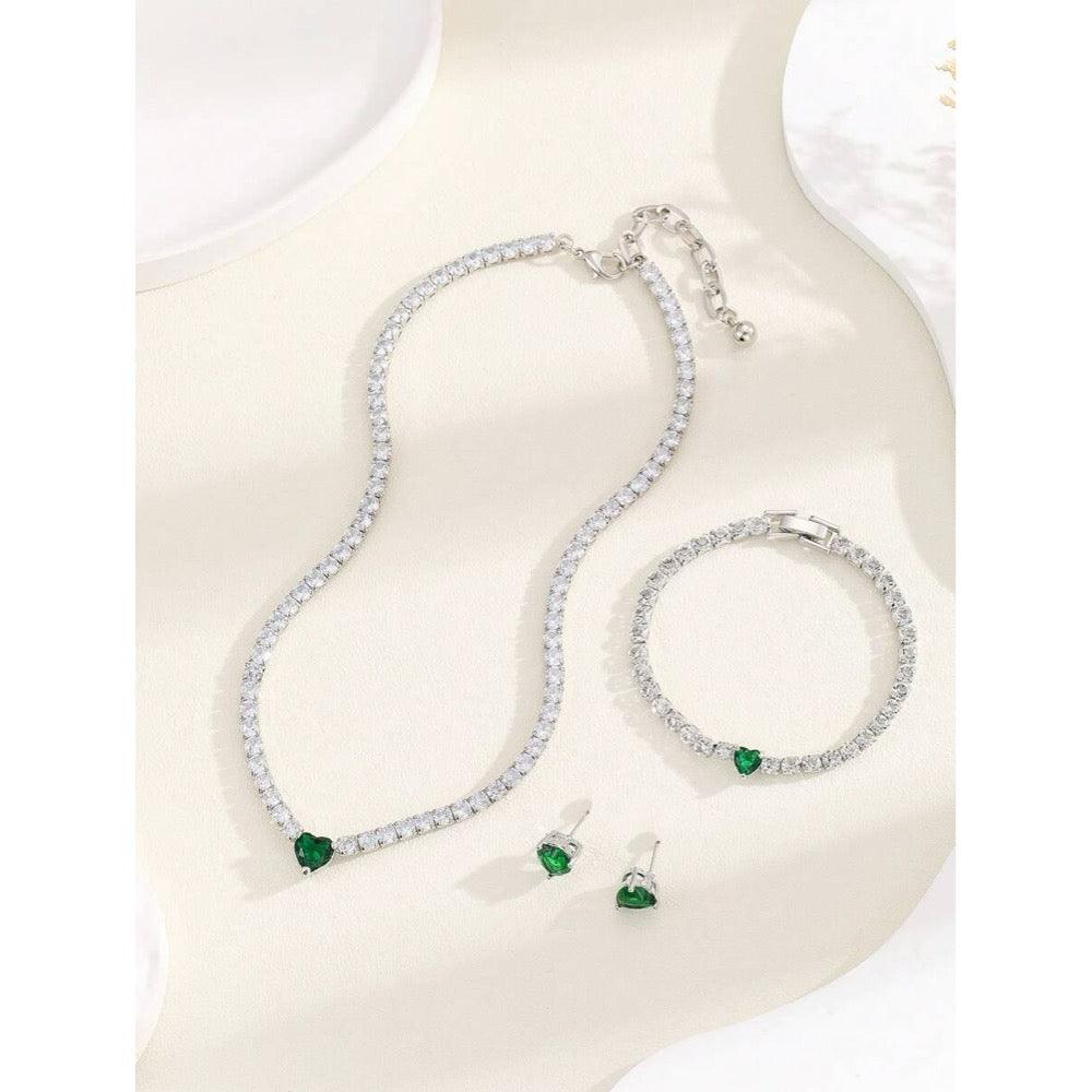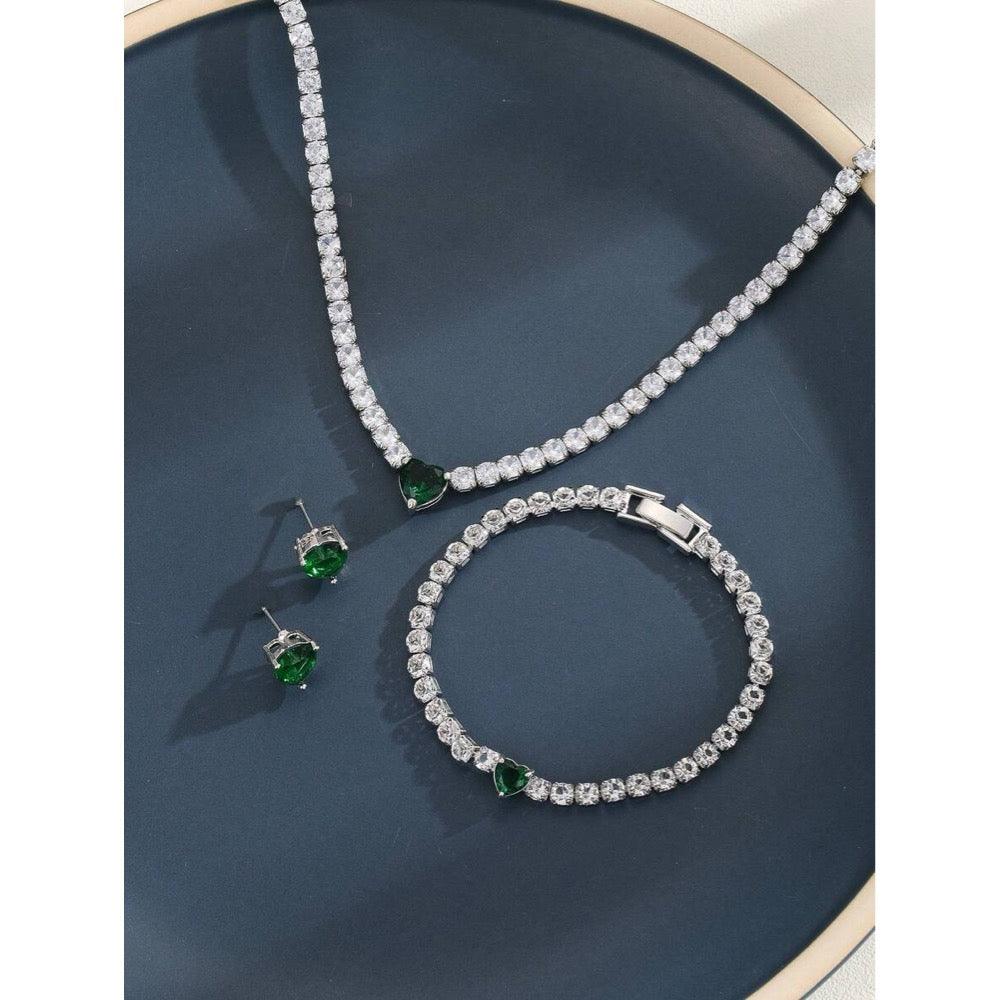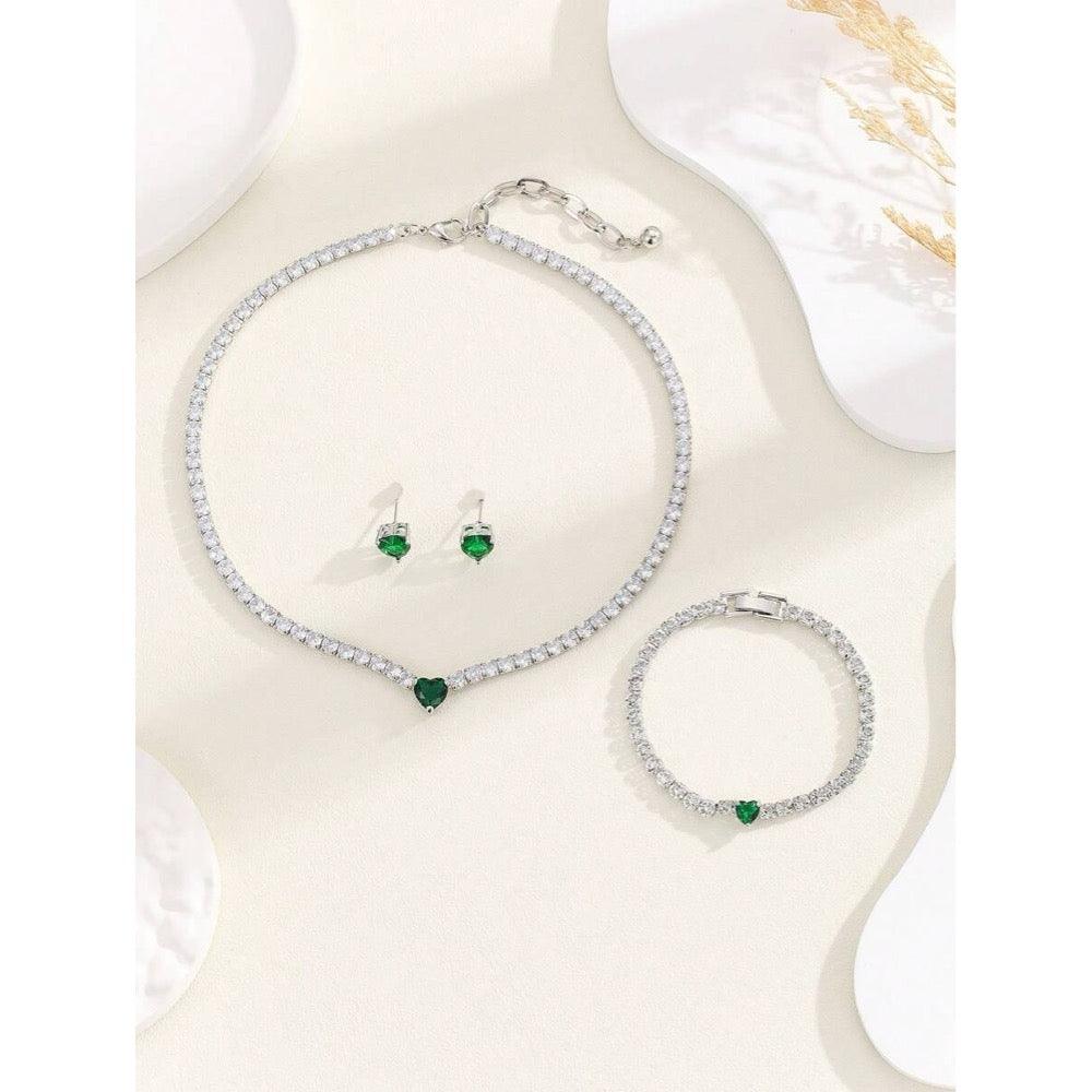 Set Aira – colier tennis, brățară și cercei cu pietre din zirconiu și inimă verde