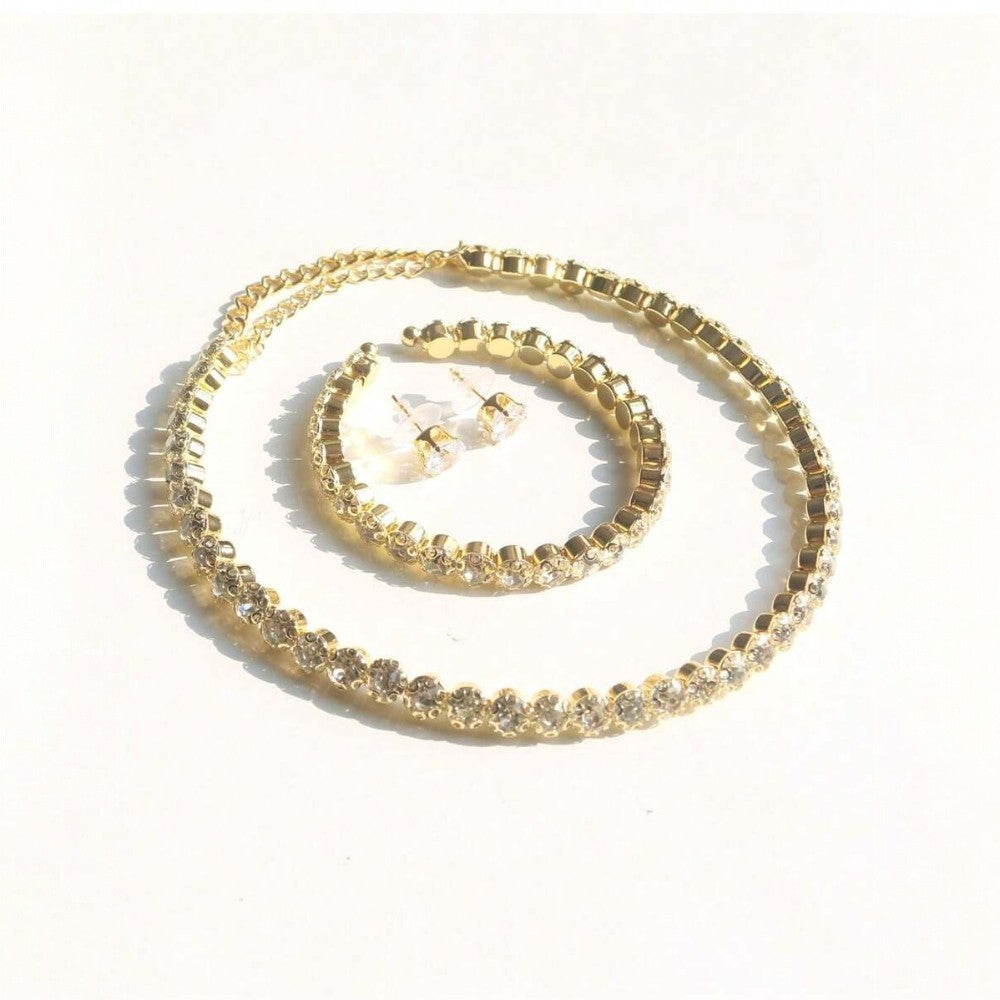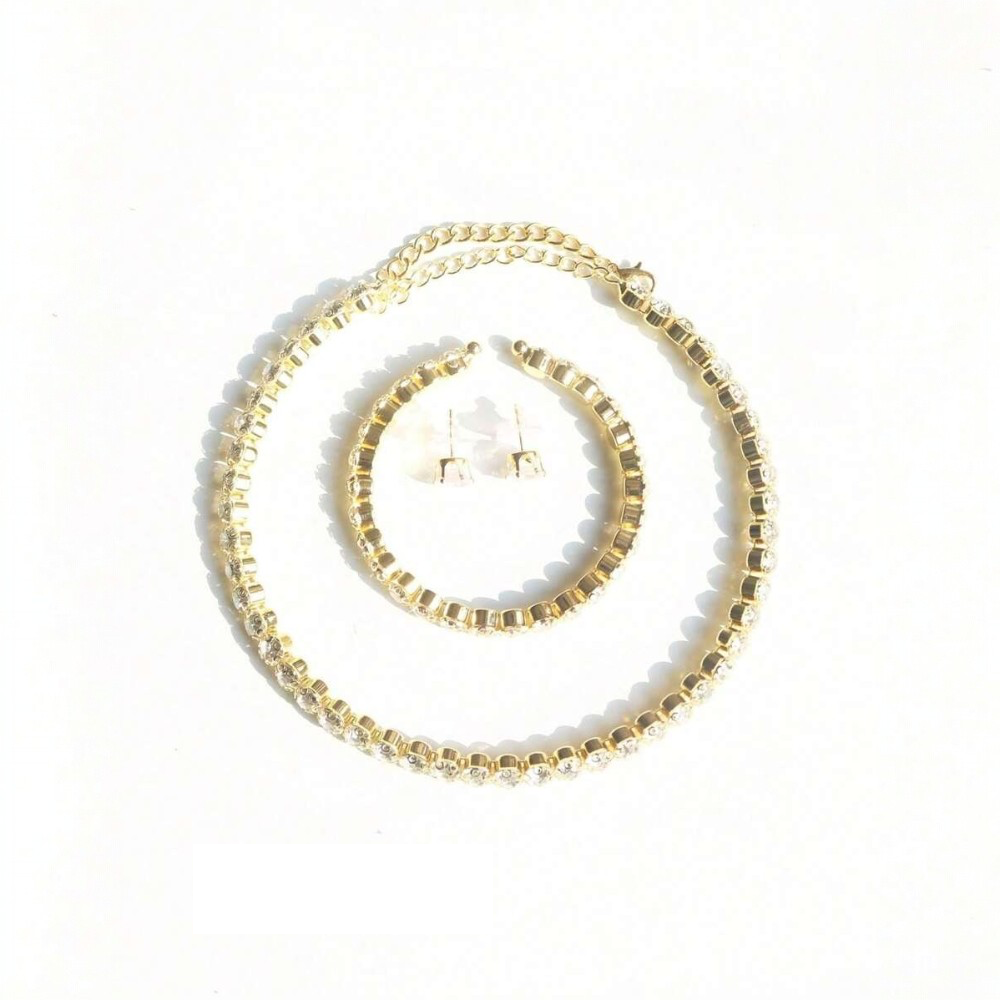 Set colier tennis, bratara si cercei, auriu, cu pietre, Dave C15